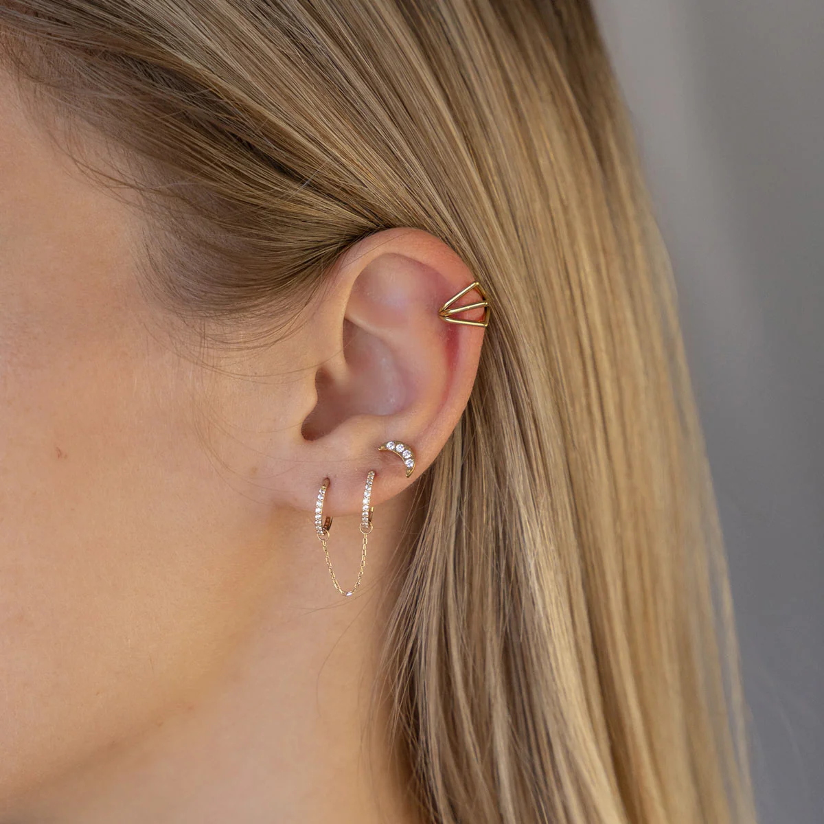 Alcor. Le style réinventé par la géométrie. Son design en chevron joue sur la superposition pour capter la lumière et apporter du relief au Conch ou au Daith. Ce bijou en titane s'installe aisément grâce à son fermoir clicker, alliant sécurité et élégance moderne.