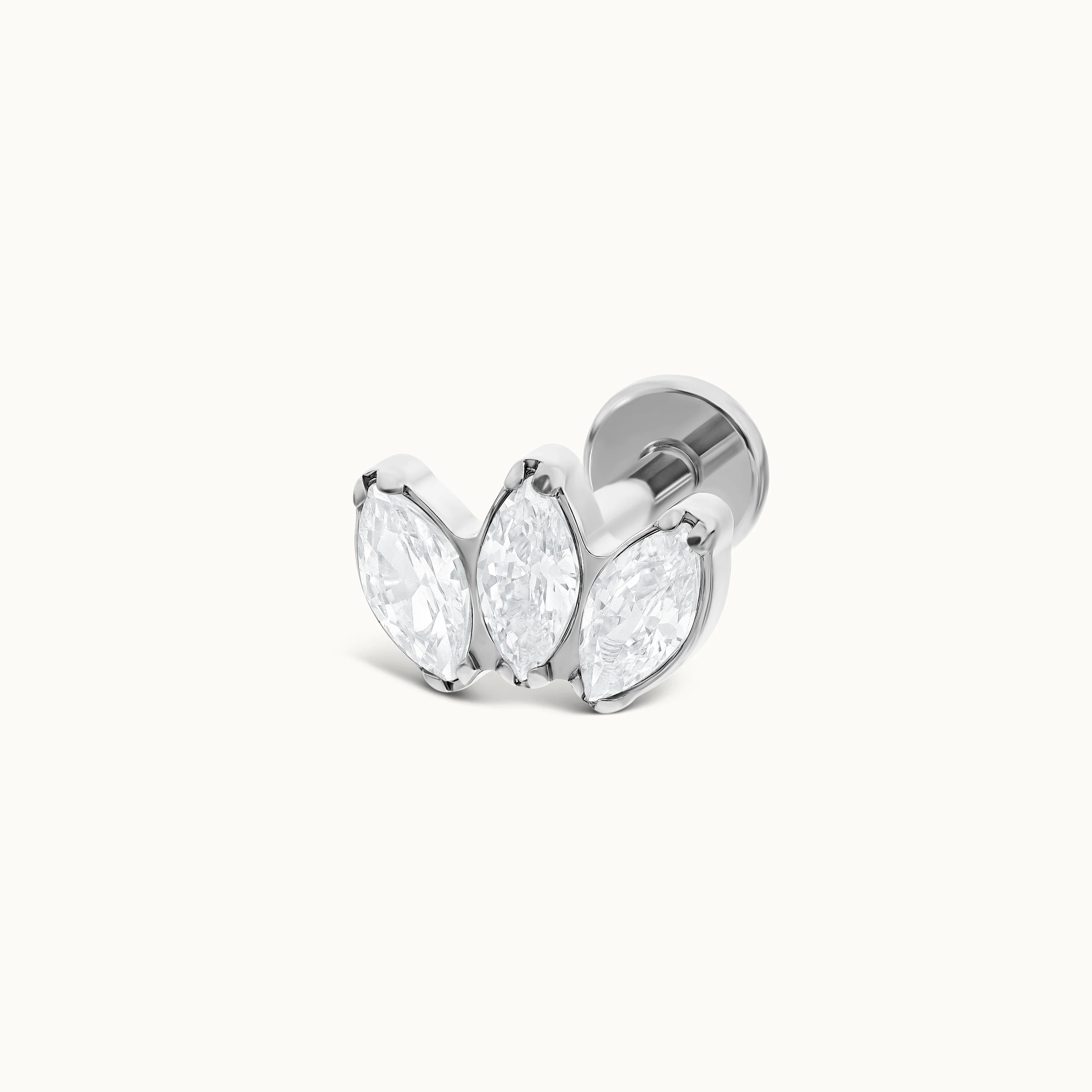 Marquise. Une composition d'une élégance rare. Avec ses trois cristaux en forme de marquise, ce bijou capte la lumière sous tous les angles pour sublimer un Hélix ou un Conch. Son vissage interne en titane assure une sécurité totale et un éclat durable.